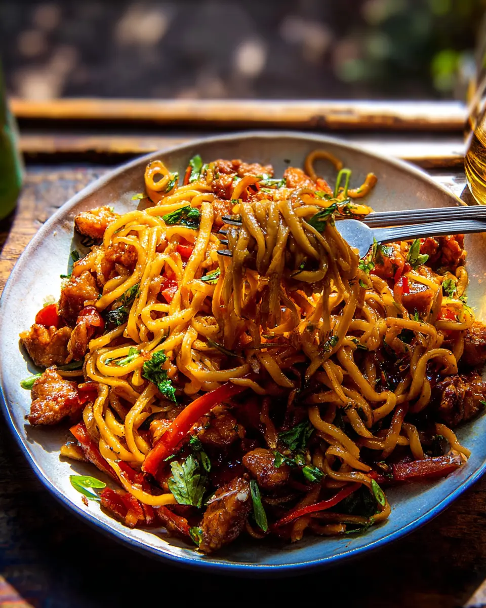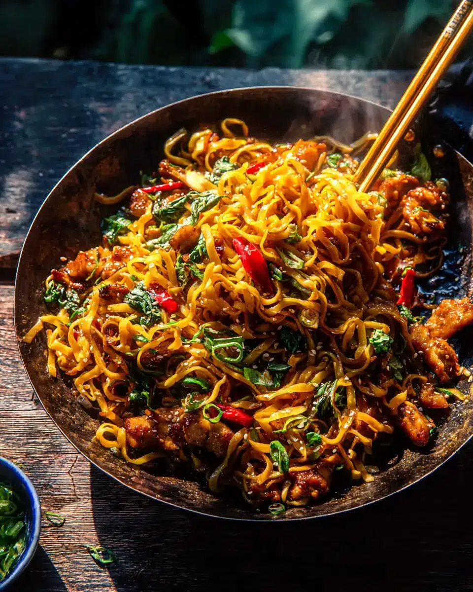 In just 20 minutes, crispy garlic chicken noodles transform simple ingredients into a savory delight. This quick recipe is perfect for busy weeknights, providing a flavorful dish packed with texture and nutrition.