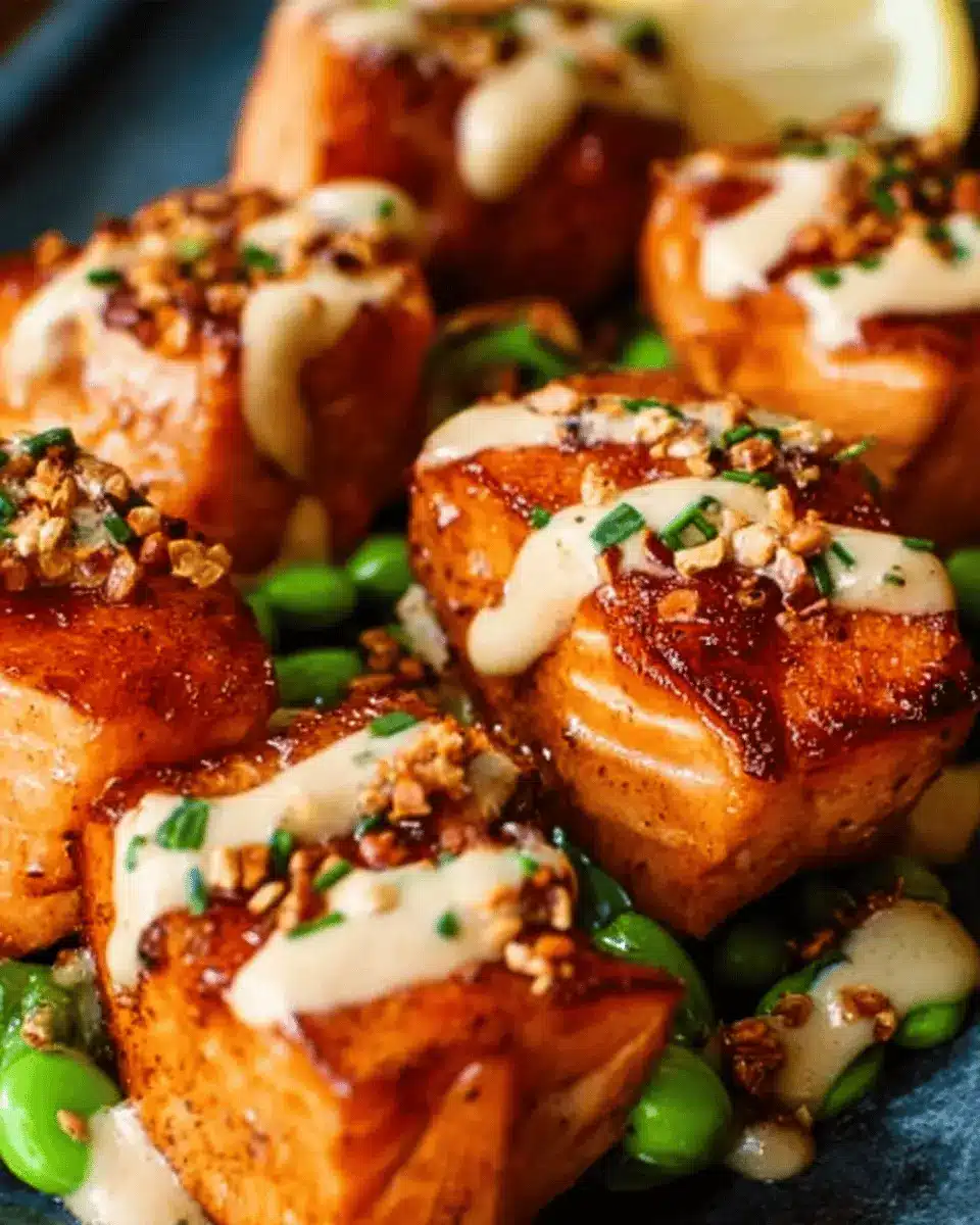 - Fresh Greens: Serve these salmon bites on a bed of mixed greens, drizzled with a light vinaigrette, to balance the richness of the sauce.