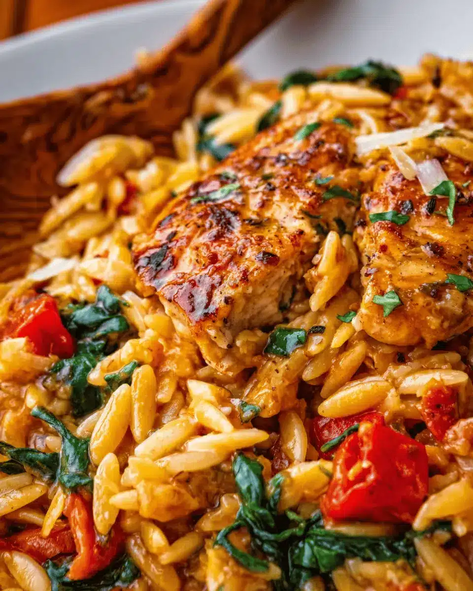 If you crave a fiery kick, consider turning up the heat with Spicy Cajun Chicken Orzo. Use a generous 3 tablespoons of Cajun seasoning to elevate the flavor profile, and toss in some sliced jalapeños or red pepper flakes for an extra punch. A side of homemade cornbread will help balance the heat and ensure a deliciously comforting meal, perfect for those chilly nights.