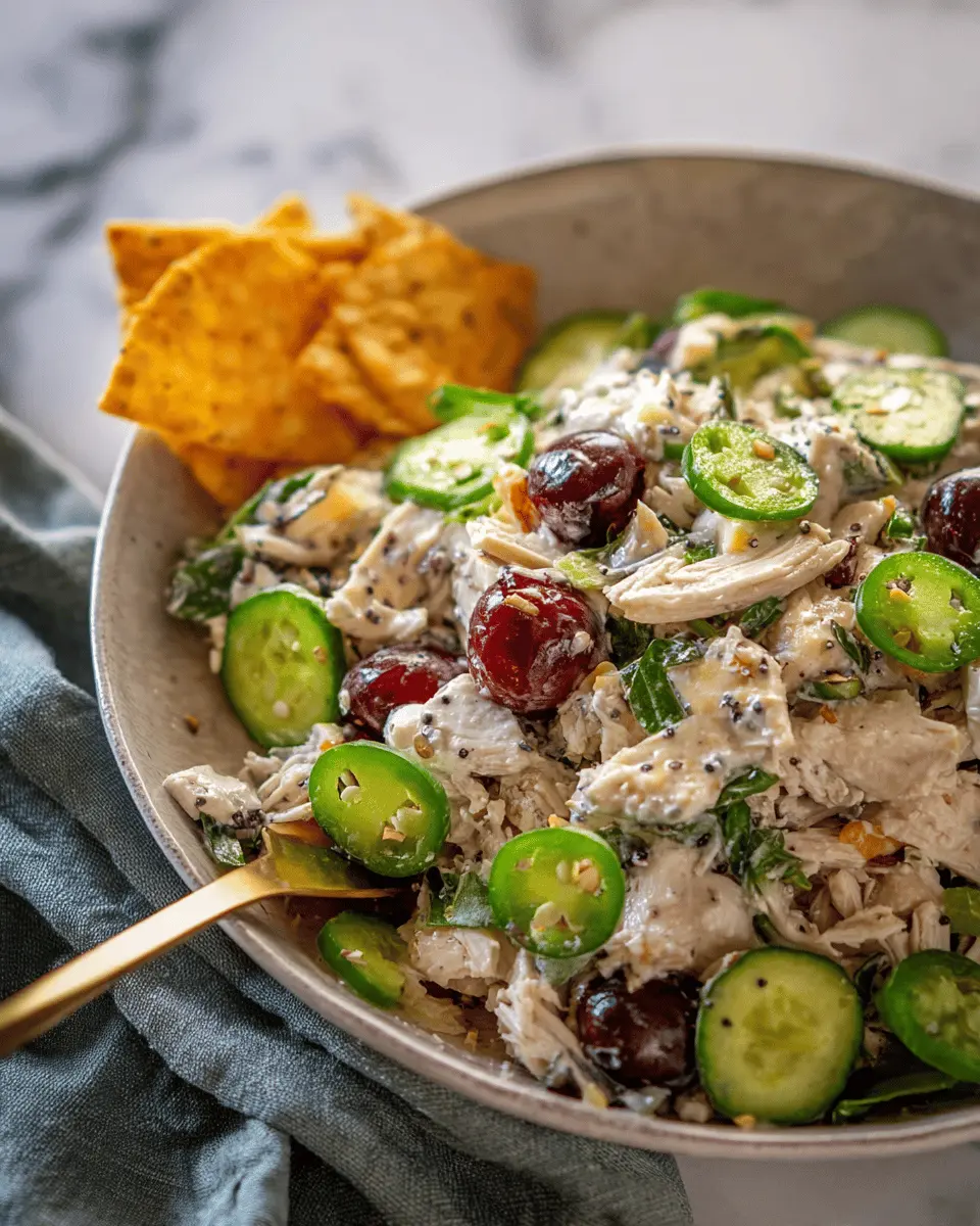 Why is this salad considered a game changer? For starters, it beautifully balances savory and sweet, with a surprising kick of jalapeno that keeps your taste buds guessing. Whether you’re preparing for a picnic, looking for a meal prep option, or seeking a unique addition to your lunchbox, this chicken salad fits the bill perfectly.