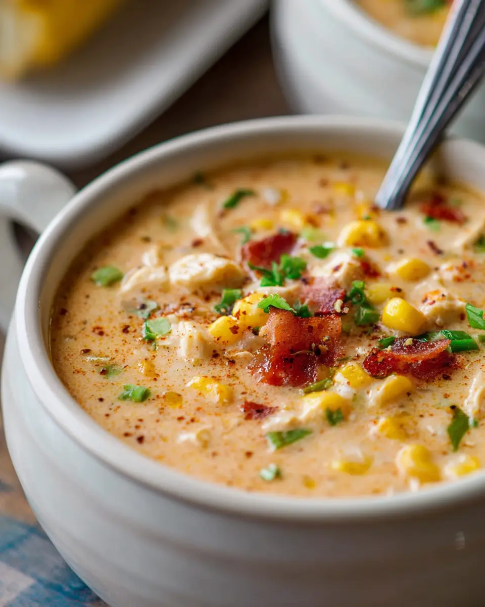 For a spicy twist on classic Chicken Corn Chowder, kick up the heat with additional jalapeños or your preferred hot sauce! You can also incorporate diced green chiles or even a sprinkle of cayenne pepper to elevate the dish. Consider garnishing with fresh cilantro and a squeeze of lime for a refreshing finish. These variations not only enhance the taste but also add an exciting flair to your chowder experience!