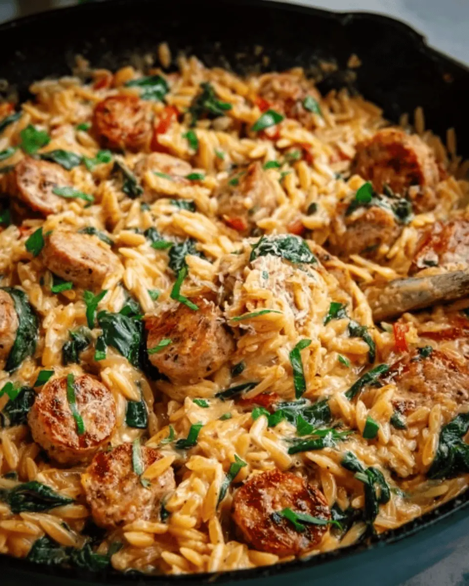 Introduction to Creamy Chicken Sausage Orzo Skillet