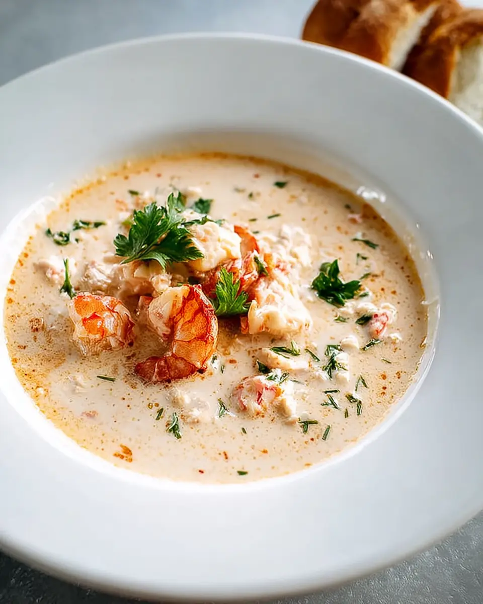 Presentation is key for any dish! Serve your creamy shrimp and crab bisque in elegant bowls, topped with freshly chopped green onions. Garnish with a sprinkle of paprika or parsley for an added pop of color. For a fun twist, consider serving individual portions in hollowed-out bread bowls—this not only looks impressive but also adds an extra layer of flavor.