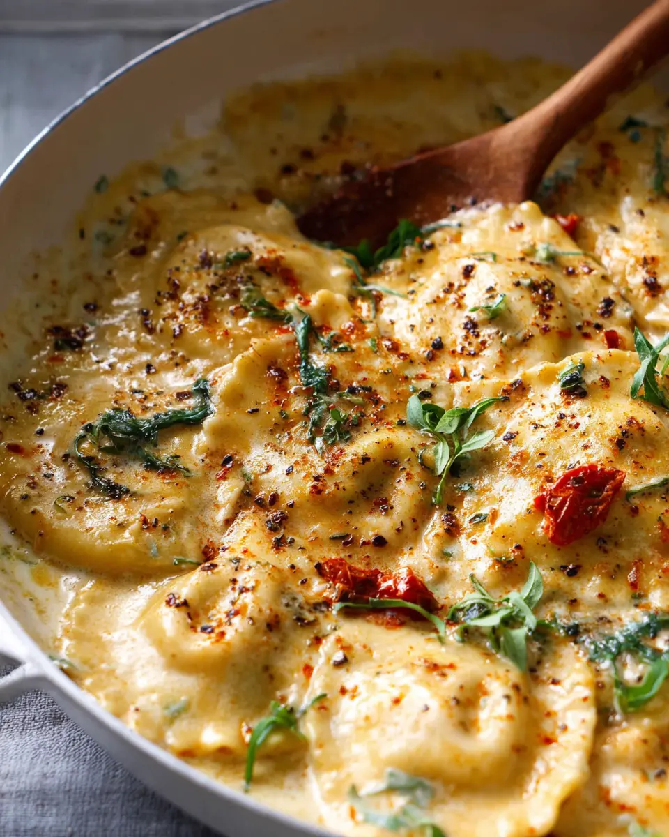 Elevate your Creamy Tuscan Ravioli with these finishing touches: