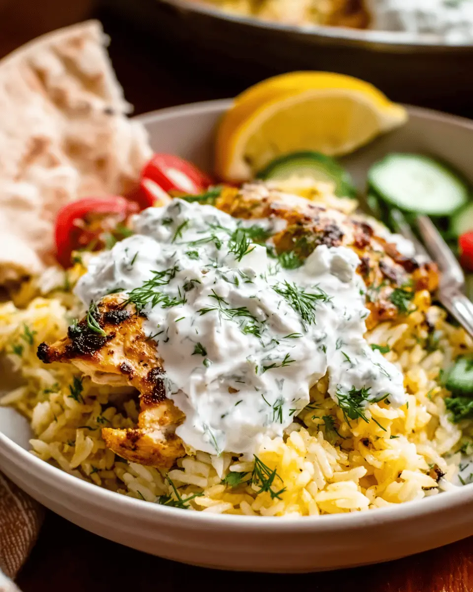 Curious about the origins of tzatziki? This creamy yogurt-based sauce hails from Greece, often served with grilled meats or veggies. It adds a refreshing touch to our dish that perfectly complements the tender chicken and fluffy rice. You’ll want to keep coming back for more!