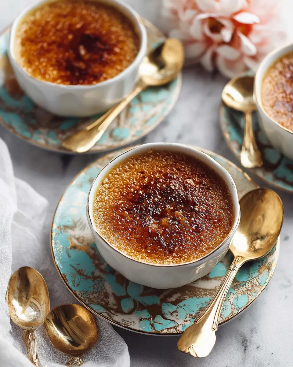 Finally, just before serving, sprinkle a thin, even layer of granulated sugar on top of each custard. Use a kitchen torch to caramelize the sugar, moving the flame evenly across the surface until it forms a beautiful golden crust. Let it cool for a few minutes, and you’ll be ready to crack into that delicious layer of sweetness.