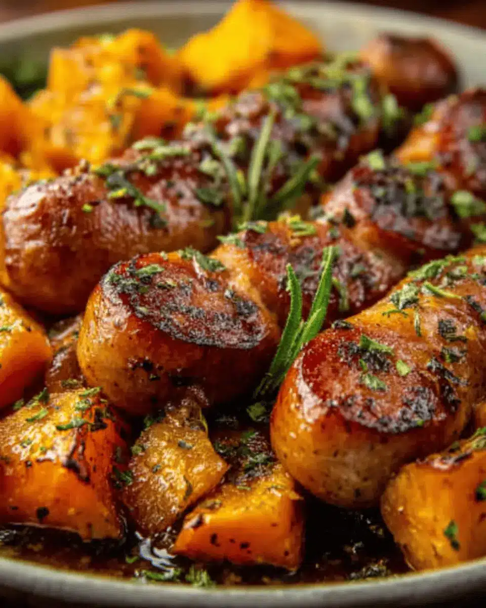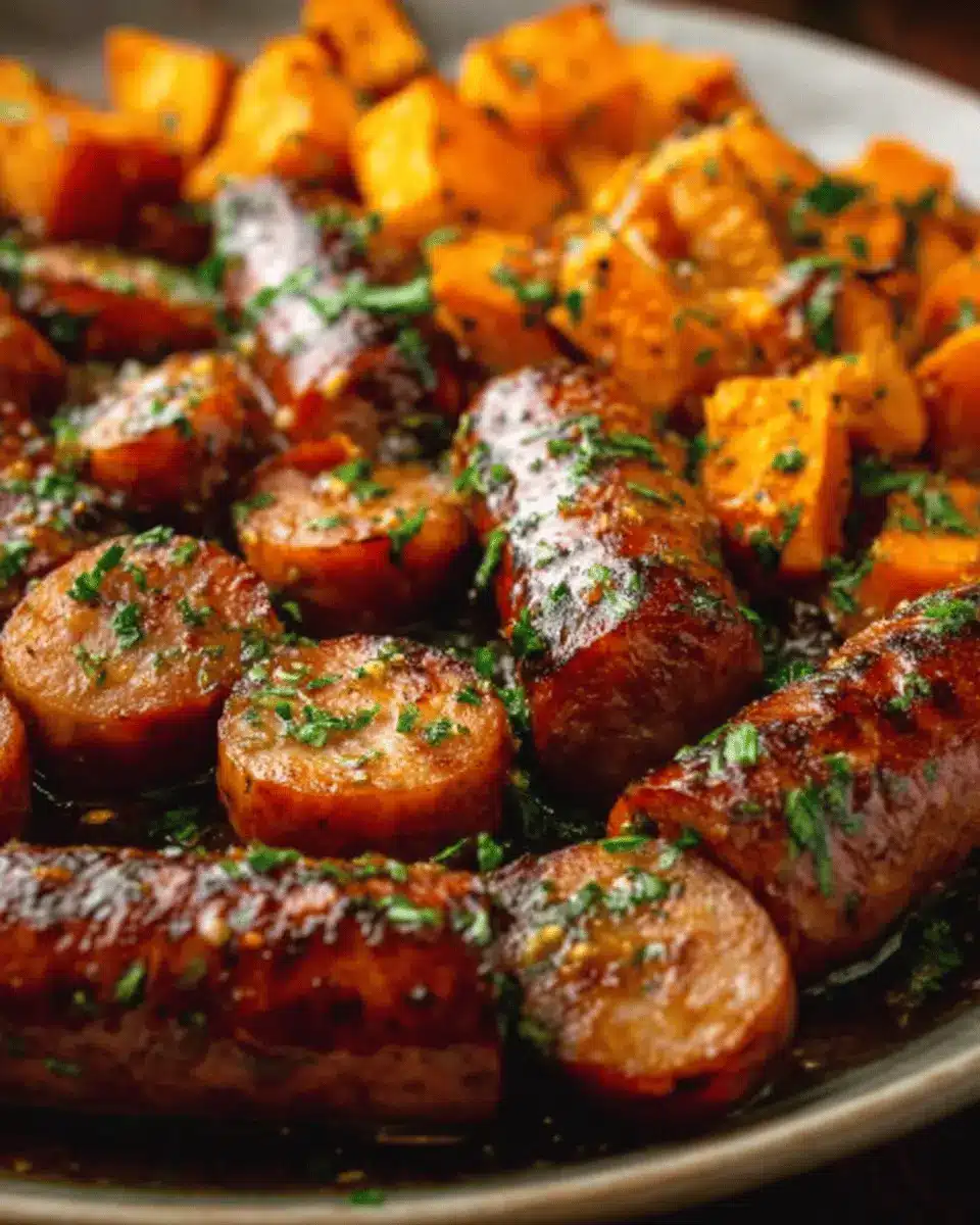 Absolutely! To make things easier during a busy week, you can prep the sweet potatoes and slice the sausages in advance. Keep them stored in airtight containers in the refrigerator. When you’re ready to enjoy your meal, simply toss them together and roast as instructed. This step not only saves time but also makes weekday dinners feel like a gourmet treat!