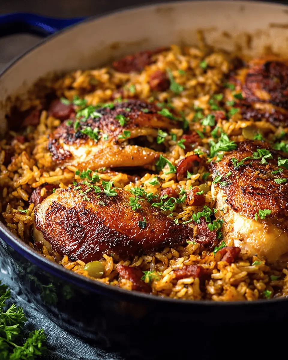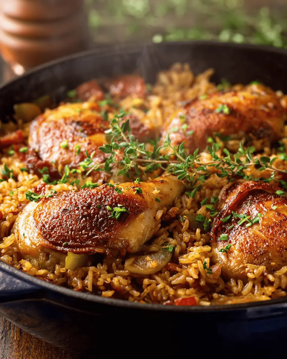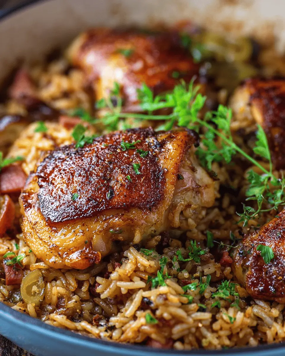 Rich in flavor and nutrients, this dish boasts an impressive protein content, primarily thanks to the chicken thighs and andouille sausage. You can expect approximately 35 grams of protein per serving, making it a great choice for muscle repair and energy.