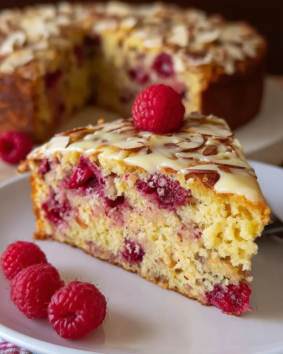 Raspberry-Ricotta Cake with White Chocolate and Almonds