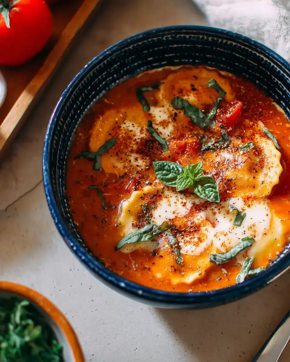 Roasted Red Pepper Ravioli Soup