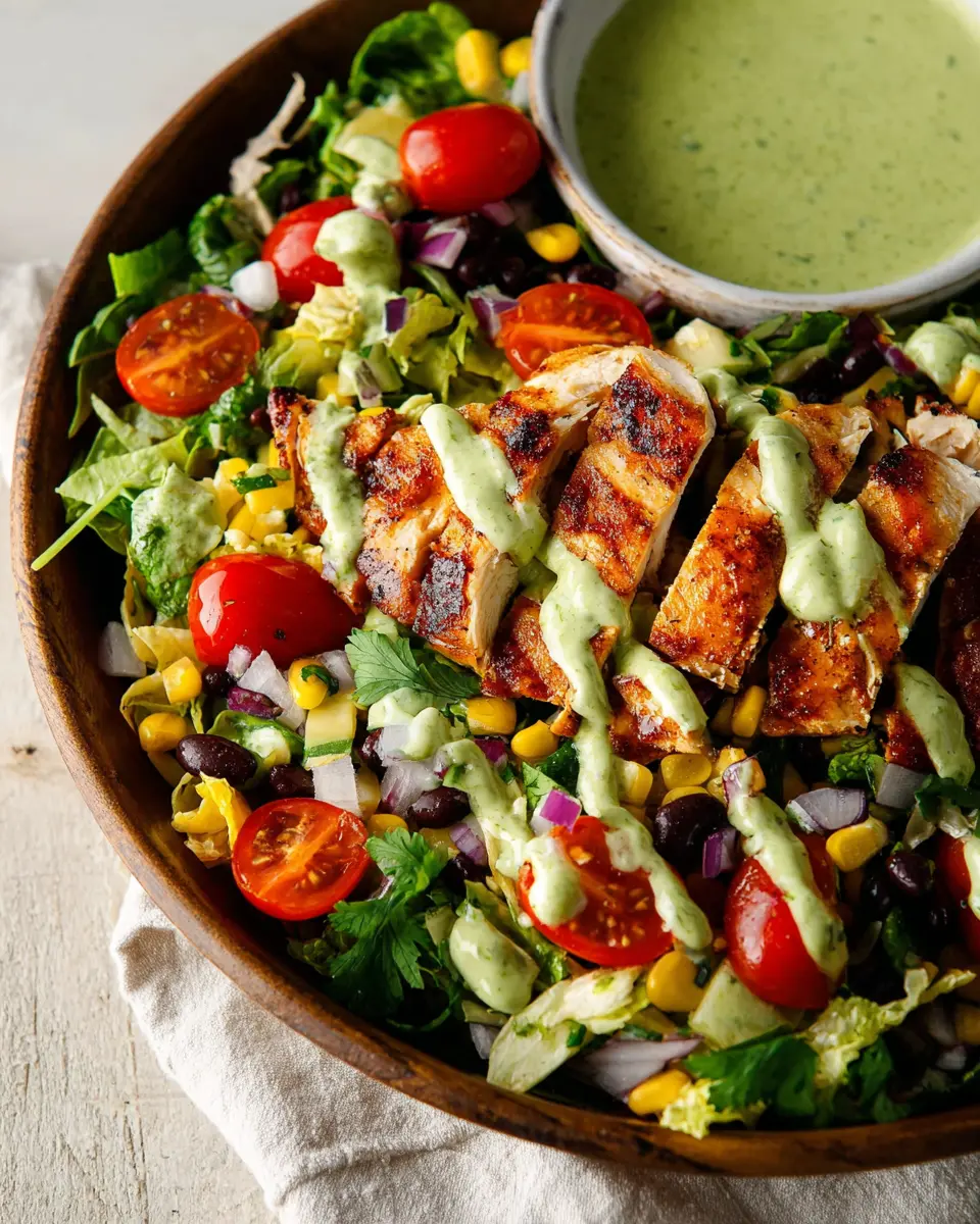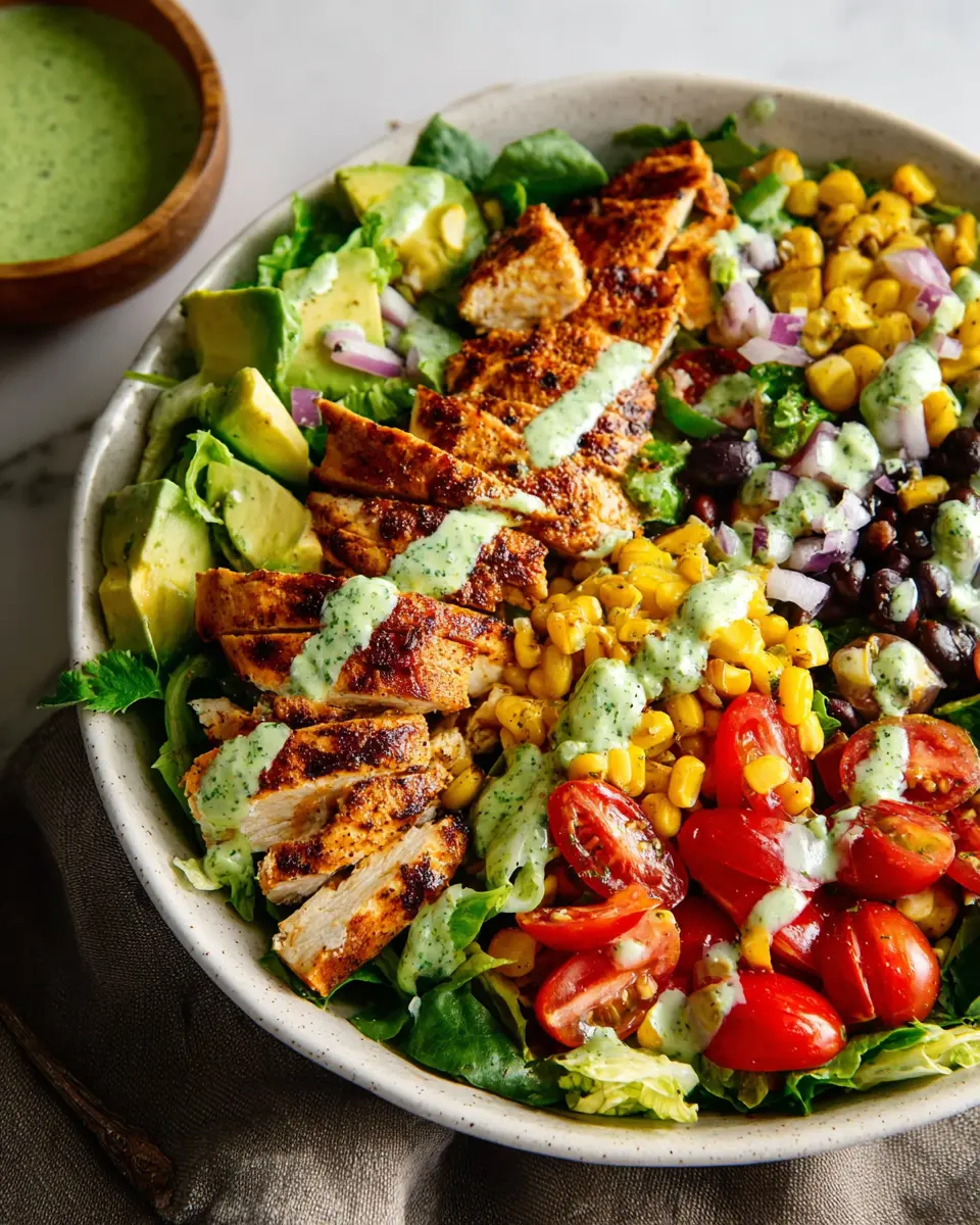 This vibrant salad brings the bold flavors of the Southwest right to your plate. Featuring juicy marinated chicken, fresh veggies, and a creamy avocado dressing, it’s not only satisfying but also visually appealing. With layers of textures and tastes—from crispy romaine to sweet corn and zesty lime—this dish turns a simple salad into a complete meal. It’s also perfect for meal prep, serving you well throughout the week.