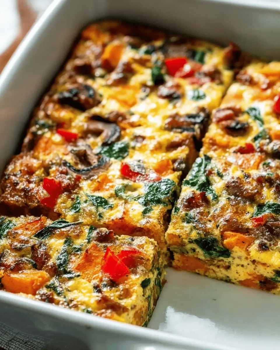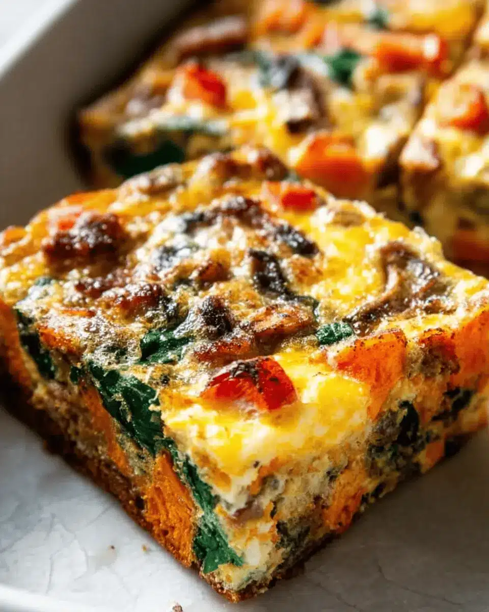Feel free to customize your Sweet Potato Breakfast Casserole with other veggies! Consider adding zucchini, mushrooms, or kale. Just remember to chop them into small pieces, so they cook evenly and blend nicely with the sweet potatoes and eggs. Mixing up veggies not only enhances the flavor but also packs in even more nutrients.